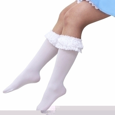 リボン付きレースハイソックス 白 白