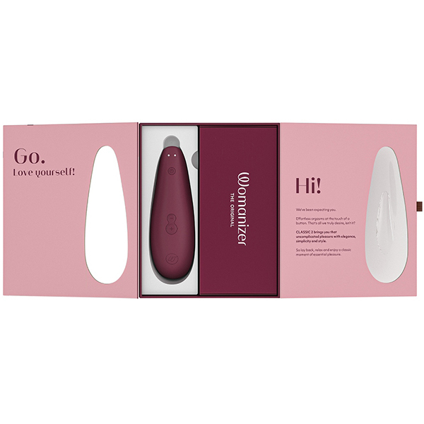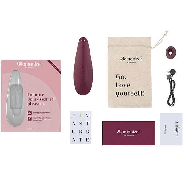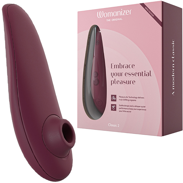 世界初の吸引式バイブとして人気のウーマナイザーから入門用にぴったりな商品が登場しました!「ウーマナイザー クラシック2 (ボルドー)」。プレミアムほどの高性能さは要らない!でも高級感は失いたくない。そんな人に最適な商品です♪前作では8段階だった振動機能が10段階へ!吸引部は柔らかな肌触りのシリコンで、オーガズムに達した際に電源ボタンを押せば最弱の吸引力になる新機能「アフタグローフューチャー機能」を搭載。最弱の振動レベルに切り替わることで「いきなりブツッ」と切れることなく最後まで優しい余韻が楽しめます♪使い方はシンプルでキャップをクリトリスにかぶせるように当てるだけ。エロティックに吸われキスされているような、あなたの一番敏感で繊細なところへ複雑な快感と刺激を与えてくれます。※こちらの商品は受注発注商品の為、ご注文から発送までに3、4営業日掛かる場合が御座います。