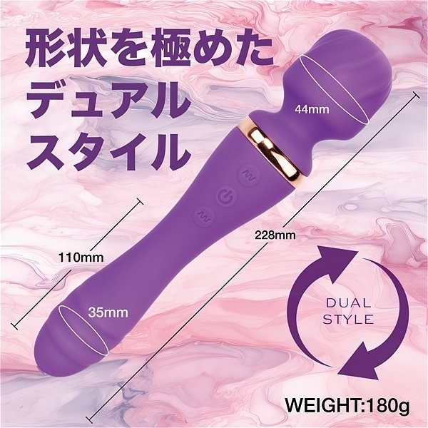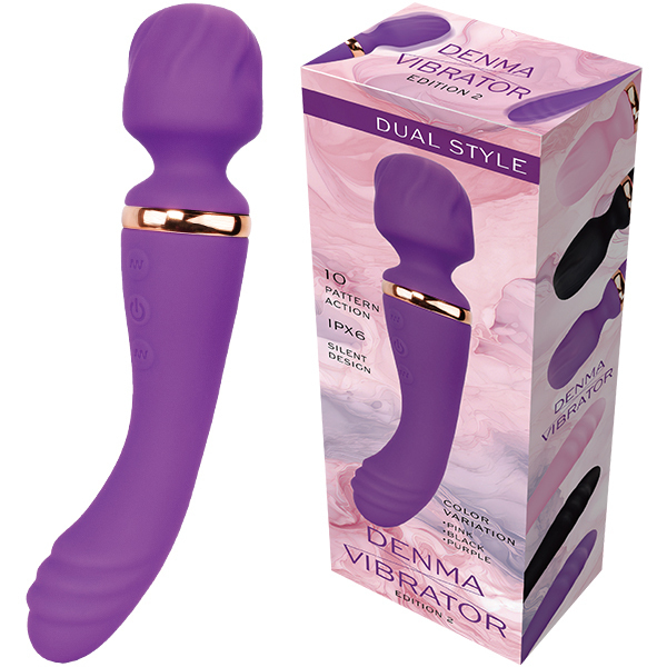 デンマとバイブ。ナカ責めとソト責めどちらも楽しめる両側ヘッドのバイブデンマに形状を極めた新型登場。上質振動と肌触りが滑らかな高品質シリコン・さらにIPX6の高レベル防水と性能面も充実した実用性バツグンのナイトグッズです。デンマ・バイブ共に10の振動パターン。120分の充電で最大50分アクション可能なリチウムイオンバッテリー搭載(使用環境により大幅に増減します。)●カラー:パープル