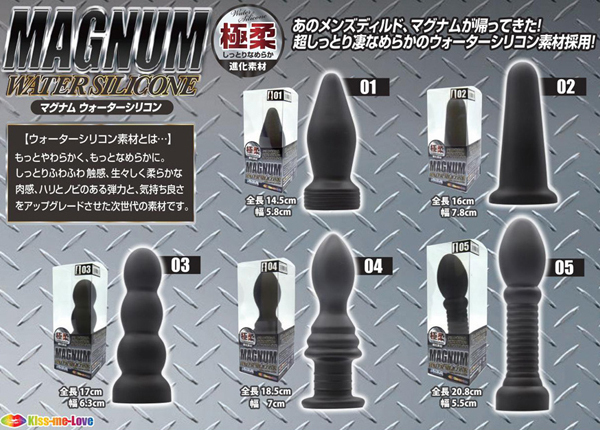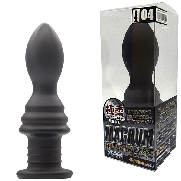 ブラックが冴えわたる本格派ディルドが最新素材になって新登場!極上素材を採用した「マグナム ウォーターシリコン」!黒い欲望を満足させるエキスパートなボディライン。その魅力をそのままに素材をグレードアップしました。シリコンを超える進化素材。超しっとり凄なめらか快感度を追求した進化素材、それがこのウォーターシリコン素材なのです。しっとりきめ細やかな質感に生々しい生体的な肉感弾力、人体や環境にも優しい安心材料。アダルトグッズのステージを高めべく進化したマテリアルです。熟練者向けのマニアな形状に極上の肉々しさをプラスしたゴージャスなディルドです。調教や拡張などのハードコアでエクストリームなプレイにぴったりなシリーズとなりました。「MAGNUM」の名の通りパワーあふれる快感をご体験ください。「04」は、太さ4〜6センチのプラグ型フォルム。二段階の搾りスポットをもつ斬新な挿入感!