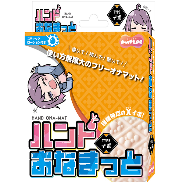 自分好みの快感を自在に作り出せるマット型オナホールです。大小不規則に並んだイボと、ひし形に区切る筋が特徴の複合構造で、モコモコとした使用感に加え、筋が引っかかることで刺激にアクセントが生まれます♪巻いて、挟んで、敷いてと、使い方は無限大!先端を包んだり、袋をマッサージしたりと、さまざまな刺激が楽しめます。平らなマット型なので、水洗いも簡単でお手入れも楽々です♪