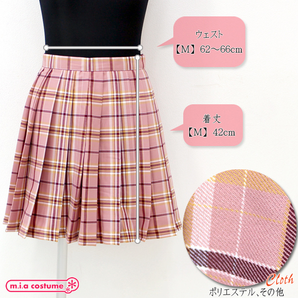 自分流にアレンジして制服コーデを楽しもう!ピンク×キャメルの可愛いチェック柄プリーツスカート単品。ウエスト調節可能なアジャスター付き留め具付きで、サイドには横ファスナーとポケットが付いた機能性抜群の本格派デザイン♪現役学生さんのコーデアイテムとして、コスプレ衣装や制服コスと合わせても可愛い!※色落ちの可能性があるので水洗い&塩素系漂白剤による漂白は不可※水洗い不可、塩素系漂白剤による漂白不可、色落ちの可能性があります。※こちらの商品は在庫の状況によりお届けまでに4日〜7日程度かかる場合がございます。