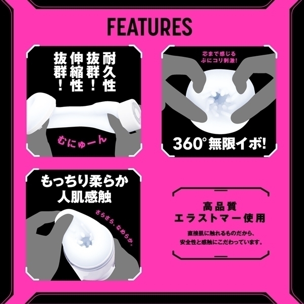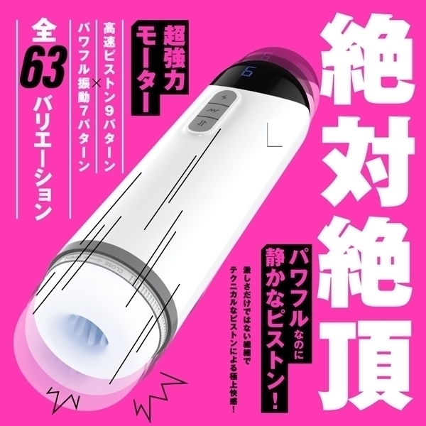 超洗練されたピストン式電動オナホでホンモノSEX体験!?高速ピストン9パターン×パワフル振動7パターンの全63バリエーション!最先端技術によるパワフルなのに静かなピストン!激しさだけではない繊細でテクニカルなピストンによる極上快感!初心者にも使いやすい電動ホールです。3つのボタンでシンプル操作!後処理簡単!ホールを取って洗うだけ!重量約880gで手持ち操作も楽々!直接肌に触れるものだから、安全性と感触にこだわり高品質なエラストマーを使用しています。生活防水 IPX6。静音設計 ≦65dB。充電用USBケーブル付属。