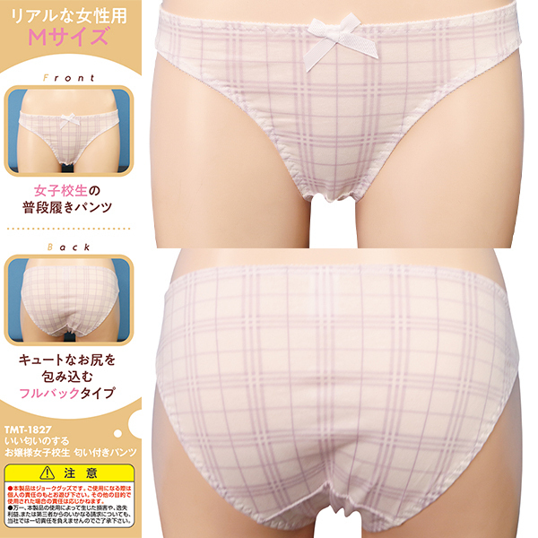 上品で可愛らしいデザインが特徴のフルバックタイプです♪お嬢様女子校生の普段履きをイメージし、淡いピンクカラーにチェック柄をあしらった清楚なデザイン!女性用Mサイズで、フィット感も抜群です♪生地は肌触りの良い素材を使用し、快適な着用感が楽しめます!心地よい香りがプラスされており、特別なひとときを演出♪数量限定の商品となっておりますので、気になる方はぜひお早めにお求めください!イラストは大嘘が担当し、細部までこだわりが詰まった一枚です♪