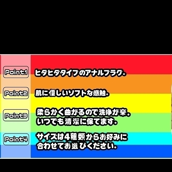 柔らかいヒダヒダの凹凸が全体を刺激し、少し尖った先端が奥まで届く快感があなたを襲う!肌に優しいソフトな感触。柔らかく、曲がるので洗浄が楽。いつでも清潔に保てます。サイズは4種類からお好みのサイズをお選び下さい。●Mサイズ